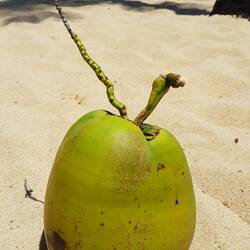Bei uns am Strand wurden heute die Kokosnüsse mit einer langen Bambusstange von den Palmen geholt. Das ist ganz schön gefährlich wenn da so eine große schwere Kokosnuss auf den Boden kracht. DasBaca lagi