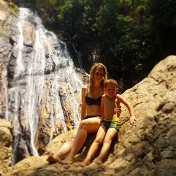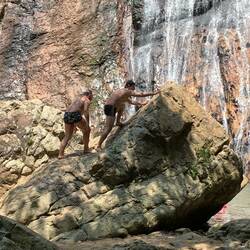 Mit dem Minivan haben wir heute einen Ausflug zum Na Mueang Wasserfall gemacht. Wir waren im Pool schwimmen und sind über die Felsen geklettert.