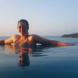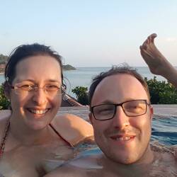 Unsere neue Unterkunft liegt am Hang. Das ist zwar nicht barrierefrei und nicht kinderfreundlich, dafür hat man aber eine tolle Sicht. Und hier gibt es einen grandiosen Infinity Pool.