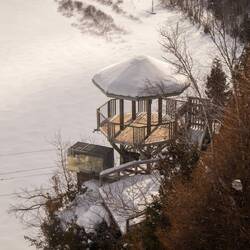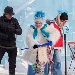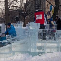 Took the bus down to the Carnival and strolled through the displays. It was relatively warm today with a coating of fluffy snow that fell overnight. Small crowds made the day very enjoyable.