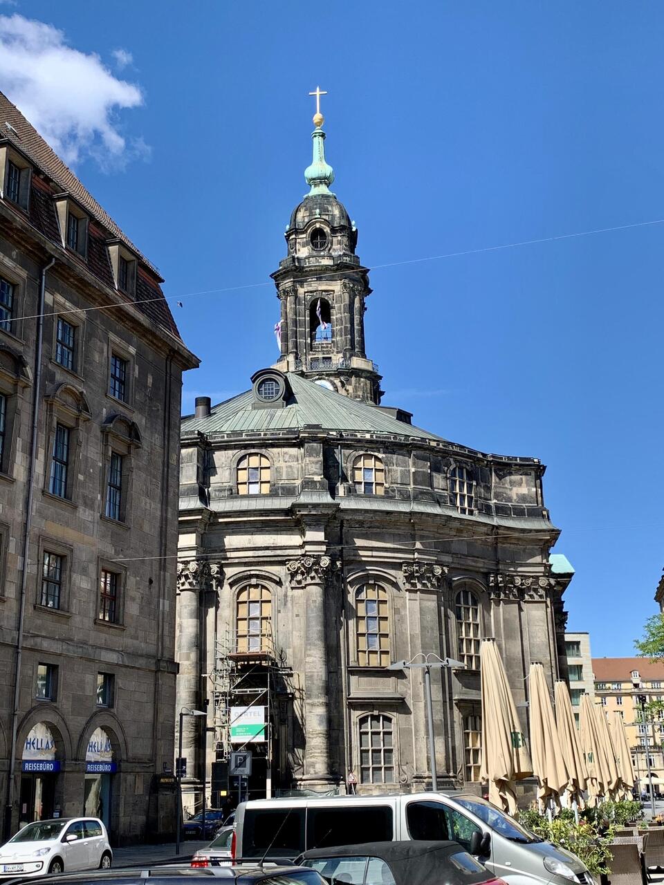 Vom Rathaus ging es vorbei an der Kreuzkirche zum Altmarkt. Auch in die Kreuzkirche sind wir kurz rein. Leider durften wir dort jedoch keine Fotos machen, weswegen wir nur Bilder von Außen haben. DieLeer más