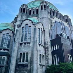 Nach einem wieder sehr gutem Frühstück hieß es auschecken und losfahren. Bevor es aber nach Löwen ging, haben wir noch das letzte Ziel in Lüttich angesehen. Schon gestern hatten wir die gigantische Kirche und den Leuchtturm oberhalb vom Hotel gesehen. Nachdem es aber circa 100 Höhenmeter hochging und wir nach der langen Treppe darauf keine Lust mehr hatten, war der Plan heute mit dem Auto hin zu fahren. Die Kirche und der Turm sind zwei gigantische Bauwerke in toller Lage und trotzdem leider auch etwas am verfallen. Der Platz ist nicht sonderlich gut gepflegt, die Kirche nur am Sonntag zugänglich und zusätzlich wachsen an Teilen der Fassade Bäume. Der Turm ist noch im sehr guten Zustand und auch gut gepflegt. Leider stimmen die Öffnungszeiten wohl nicht ganz, da er offen sein sollte aber nicht war. Nicht so schlimm, auch wenn der Ausblick sicher toll gewesen wäre. Die Église du Sacré-Cœur et Notre-Dame de Lourdes ist ein Sakralbauwerk und steht im Stadtteil Cointe. Sie ist Teil des Mémorial Interallié, einer Gedenkstätte zum Ersten Weltkrieg. Die Kirche wird oft als Basilika bezeichnet, obwohl sie diesen Titel nie erhielt. Grund dafür ist der imposante und ungewöhnliche neobyzantinische Baustil. Nach dem Ersten Weltkrieg wurde Lüttich als Standort für den Bau einer Gedenkstätte zur Ehre der alliierten Gefallenen ausgewählt. Die Arbeiten begannen im Jahr 1928 und wurden 1936 beendet. 2022 wurde das Gebäude verkauft und soll künftig keine vollständige (und normale Kirche) mehr sein. So sollte ab 2023 im Inneren eine 40 m hohe Kletterwand, ein Panorama-Restaurant, ein Kinosaal und ein Mehrzwecksaal entstehen. Geplant ist, den Chor zu erhalten und weiterhin als Gedenkstätte zu nutzen. Die Krypta und Sakristei sollen ihre religiöse Funktion behalten. Für die geplanten Umbaumaßnahmen wurde noch keine Baugenehmigung erteilt. Ebenfalls Teil des Areals ist der Turm Phare de Liège, der Leuchtturm von Lüttich, als Teil des Denkmals. Der 75 Meter hohen Turm thront über der Stadt und ist neben der Kuppel von den meisten Stellen der Stadt gut zu erkennen. Hoffentlich schafft es das Areal bald wieder ein beliebterer Touristenplatz zu werden, damit hier mehr Pflege und mehr Leben einkehrt. Total schöne Lage, Ausblick und Bauwerke! Zurück im Auto ging’s dann los auf die knapp eine Stunde lange Fahrt nach Löwen.Read more