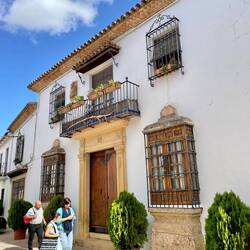An dieser Stelle ein paar Fakten zu Ronda. Ronda liegt auf einer Höhe von 723 m über dem Meeresspiegel in einer als Serranía de Ronda bekannten Berglandschaft, zu der auch die Naturparks Sierra de Grazalema und Sierra de las Nieves gehören. Die Stadt liegt rund 113 km westlich der Provinzhauptstadt Málaga und 50 km nördlich der Costa del Sol. Genau diese 50 Kilometer Luftlinie waren wir, natürlich nicht ganz so direkt und kurz, gefahren. Mit ca. 34.000 Einwohnern und einer Fläche von rund 480 km² ist die Gemeinde Ronda eine der größten Ortschaften unter den „weißen Dörfern“ Andalusiens. Bekannt ist Ronda vor allem für seine Lage. Die maurisch geprägte Altstadt liegt auf einem rundum steil abfallenden Felsplateau. Die Altstadt ist vom jüngeren Stadtteil durch eine knapp 100 m tiefe, Tajo de Ronda genannte, Schlucht getrennt. Überspannt wird der Abgrund von drei Brücken. Die Puente Árabe („Arabische Brücke“), die Puente Viejo („Alte Brücke“) und die bekannteste, die im 18. Jahrhundert erbaute Puente Nuevo („Neue Brücke“). Früheste Spuren einer Besiedlung der Region stammen bereits aus der Altsteinzeit.