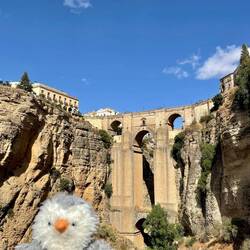 Den besten und bekanntesten Blick auf die Brücke, Schlucht und Stadt selbst gibt es vom unterhalb der Stadt gelegenen Aussichtspunkt Mirador Puente Nuevo de Ronda. Nachdem es zu diesem recht steil abwärts und somit später wieder aufwärts ging und es inzwischen sehr sonnig und warm war, bin ich zu diesem Punkt alleine gelaufen. Die Anstrengung hat sich gelohnt. Kein Wunder, dass die bekanntesten Bilder des imposanten Bauwerks von dieser Stelle aus gemacht werden. Auch merkt man schnell, dass es viele Touristen gibt die sich zu diesen Punkt für ein paar Fotos quälen, auch wenn sie es danach dann doch büßen müssen. Für mich hieß es einige Fotos von der Szenerie machen, zusätzlich ein Bild mit Pingu im Vordergrund und als kleine Erinnerung für mich auch ein Selfie vor der Brücke. Der Abstieg und anschließende Aufstieg hatte sich definitiv gelohnt, genauso wie der Weg von Marbella hierher! War eine sehr gute Entscheidung, auch wenn es damit am letzten Tag nochmal eine längere Rundreise war. Eine längere aber auch wunderschöne die in Erinnerung bleibt! Von der Brücke ging’s dann zurück, wieder etwas willkürlich durch Gassen, bis wir dann schließlich beim Auto waren und Richtung La Herradura aufgebrochen sind.Læs mere