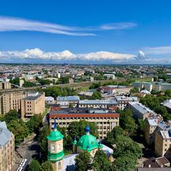 Auf der anderen Seite der Vanšu Brücke angekommen gibt es einen Aussichtspunkt auf die Altstadt. Von hier aus hat man einen tollen Blick auf das Rigaer Schloss und die Kirchtürme des Dom, derBaca selengkapnya