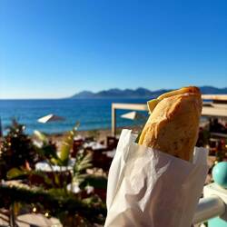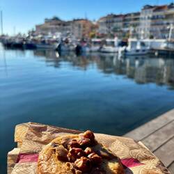 Zurück am Hafen hieß es erst mal Auszeit genießen. Nadine hatte ein Baguette mit Camembert, Feigen und Honig. Ich eins mit