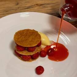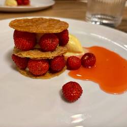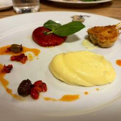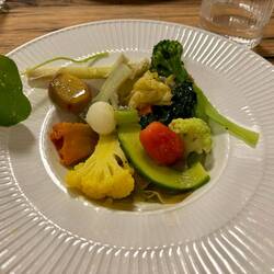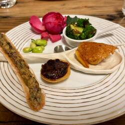 Pünktlich um 19 Uhr waren wir zu Öffnung bei unserem Restaurant für heute, das Racines. Ein rein vegetarisches Restaurant, welches seit 2025 einen Michelin Stern hat. Unser erstes SterneLæs mere
