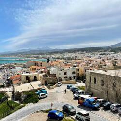 Unser Highlight war der Ausblick aufs Meer. Die Küste Richtung Osten und nach Westen. Am schönsten war jedoch sicherlich der Blick auf das unterhalb liegende Rethymno. Begleitet wurde unser RundgangLeia mais