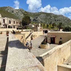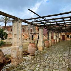 Der Besuch beim Kloster ist ein absolutes muss. Das Koster Arkadi auf Kreta wurde während der venezianischen Besatzung um das Jahr 1587 gebaut. Überlieferungen zufolge existierte das Kloster weitLeia mais