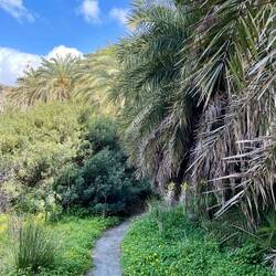 Lange waren wir unsicher, ob wir in den Palmenhain rein sollen. Vorm reingehen stand ein Schild, dass wegen Waldbrandgefahr kein Eintritt möglich ist. Permanent sind jedoch Leute rein und rausLeia mais