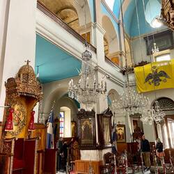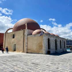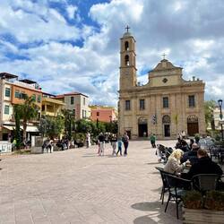 Nachdem wir durch einige Gassen gegangen sind, sind wir am zentralen Platz Athinagora rausgekommen, an dem die sehr schöne Kathedrale von Chania steht. Natürlich sind wir, trotz Karfreitag, in dieLæs mere