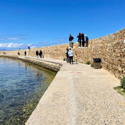 Unser weiterer Plan war am Meer entlang zum Leuchtturm zu gehen. Dafür durften wir am kompletten venezianischen Hafen entlang bis zum Yachthafen und dann auf den Wellenbrecher. Der alte venezianischeLæs mere