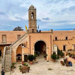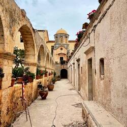 Vom Kloster Agia Triada ging’s über eine sehr schmale und kurvige Straße bergauf zum Kloster Gouverneto. Dieses war heute geschlossen, dennoch konnten wir am Parkplatz parken und vorbei am KlosterLeggi altro