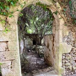 Nach den zahlreichen Ruinen sind wir zuerst auf eine (noch geöffneten) Taverne getroffen, dann auf zwei sehr schöne kleine Kirchen. Ab dem Moment ging’s immer mehr abwärts Richtung Fluss undLeggi altro