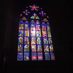 Das Innere des Doms ist unglaublich schön! Sowohl die schiere Größe, als auch die wunderschönen Bleiglasfenster. Auch die Skulpturen, Altäre und Relikte sind einfach atemberaubend. Leider gibt es einen großen Nachteil. Der Dom ist stark überfüllt gewesen. Die Menschenmengen an manchen Stellen, vor allem am Endbogen des Doms, waren sehr unangenehm. Hier stand ein großer Altar (auf dem Bild festgehalten, mit den silbernen Figuren). Da dieser Altar recht groß und imposant ist, gehen die Leute in kleineren Gruppen und langsam vorbei und dadurch entsteht ein Stau. Sehr unangenehm, die imposanten Eindrücke machen diese Unannehmlichkeit dann doch schnell wieder gut.Read more