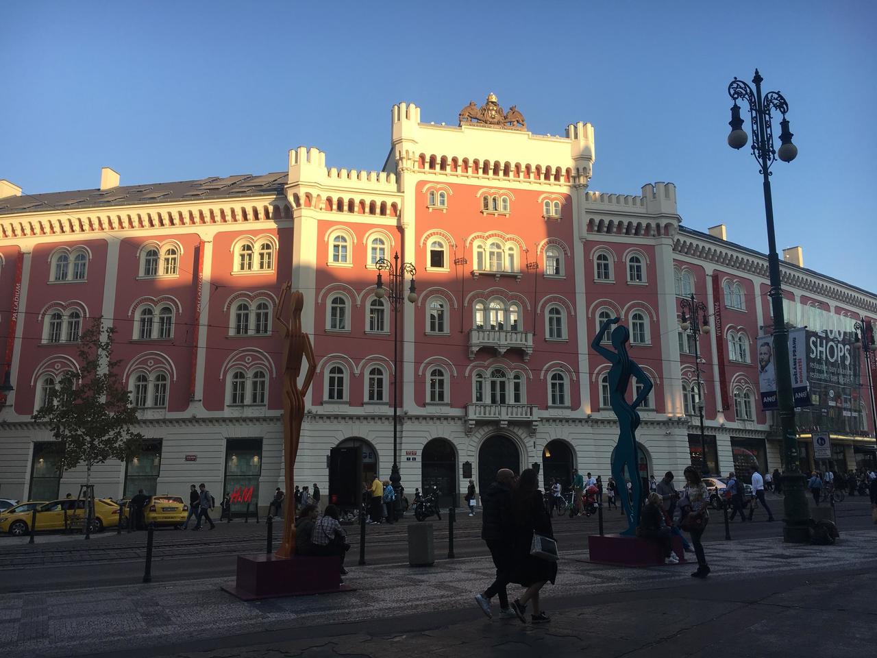 Der Weg die Treppe runter war der bisher schönste Herbstweg unseres Urlaubs. Unglaublich wie viele verschiedene schöne Farben die Bäume hier haben. Um über die Moldau zu kommen ging es für uns über die von 1905 bis 1908 erbaute Tschech Brücke. Ihre Länge beträgt 169 Meter, die Breite 16 Meter. Obwohl es so viele Brücken in Prag gibt, ist diese die einzige im Jugendstil. Nachdem wir die Moldau überquert hatten sind wir noch ein wenig den wunderschönen Fluss entlang gegangen und schließlich ins Hotel. Wir wollten eine kurze Pause machen und uns ausruhen. Der Tag war bisher recht anstrengend. Außerdem wollten wir etwas Zeit vergehen lassen um dann im Shoppingcenter in der Nähe Abend zu essen. Von ca. 14:30 Uhr bis 16:30 Uhr haben wir uns ins Zimmer gelegt, ausgeruht und frisch gemacht, bevor es weiter ging.Read more