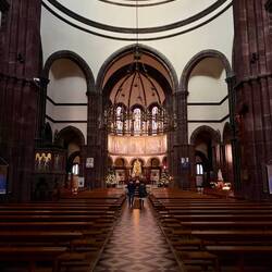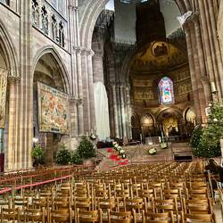 Beim besichtigen der imposanten Fassade haben wir online nachgeschaut, wann das Münster öffnet. Mehr oder weniger zufällig sind wir dabei auf eine Warteschlange gestoßen und haben uns angestellt.En savoir plus