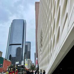 Die Straße entlang sind wir auf die Walt Disney Concert Hall gestoßen, eine der top Sehenswürdigkeiten der Downtown. Die Walt Disney Concert Hall ist ein Konzerthaus das 2003 eröffnet wurde. EsBaca selengkapnya