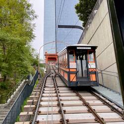 Mitten zwischen den Hochhäusern und Gebäuden der Stadt gibt es die Angel Flight Railway, um einen Hang auf bequeme Art zu überqueren. Den Hang waren wir davor noch hoch gegangen. Nachdem es jetztBaca selengkapnya