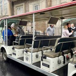 Der Start der Tour führte uns dann erst mal doch raus in den Regen. Zum Glück gabs für uns alle einen kostenfreien Regenponcho. Sehr praktisch und mitdenkend! Mit einem zur Seite offenen ShuttleBaca selengkapnya