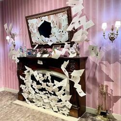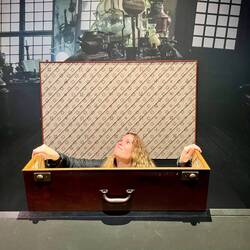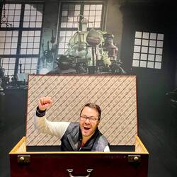 Um dem Regen zu entfliehen ging’s zwischenzeitlich in die Halle mit den Requisiten. Neben einigen neuen Requisiten vom frisch veröffentlichten Film Wonka haben wir auch den gruseligen Hasenkopf vonBaca selengkapnya