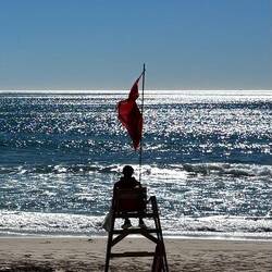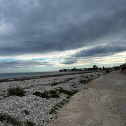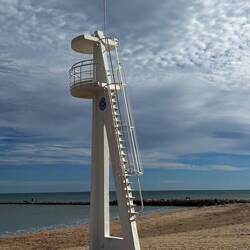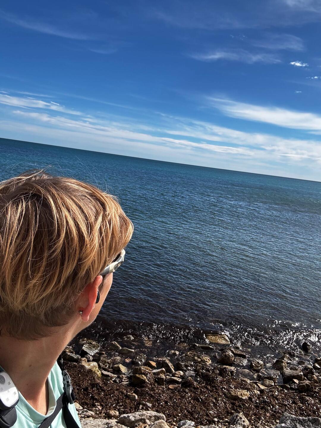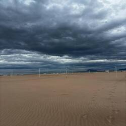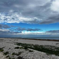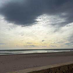 Today I woke up to some of the lowest cloud I’ve ever seen. I was tempted to climb a lifeguard ladder or two to see if I could touch it. It did clear sporadically to allow me to top up my tan. ILæs mere