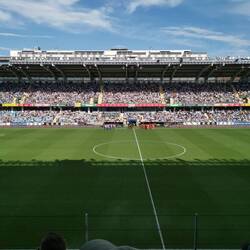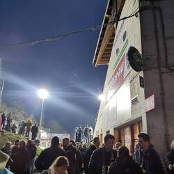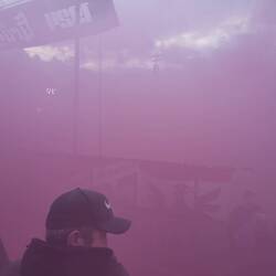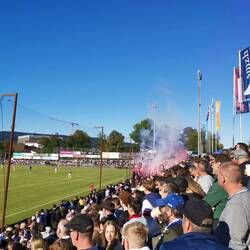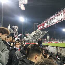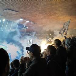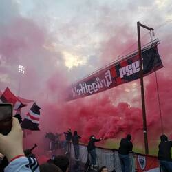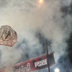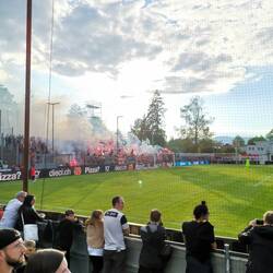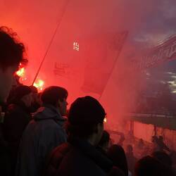 Das Spieltagserlebnis wurde massiv gesteigert durch Dardan, den ich zufällig ansprach da Matteo di Giusto nicht in der Startformation aufzufinden war, was mich dezent erstaunte. Wir führten Gespräche über Fussball, den Kosovo, die kosovarische Küche und Politik. Ein ganz feiner Kerl, der mich darauf auf ein weiteres Bier einlud. Bereits vor Anpfiff zeigte die Bierkurve, das sie viel Pyrotechnik durch die Sicherheitskontrolle bringen konnten und alle voll funktionstüchtig waren.
