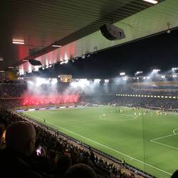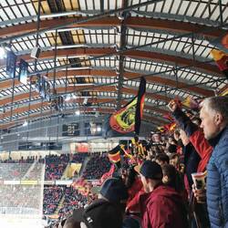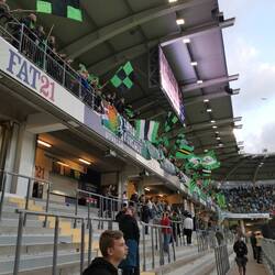 Die Kapazität des Auswärtsblocks war bis ans Limit ausgereizt und voller enthusiastischer Anhänger. Der Support der Auswärtsfans war bis zum Ende beachtlich.