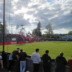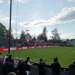 Das Stadion, ähnlich wie das Brügglifeld, alt, klein und charakterstark. Eine tolle Kulisse für das Topspiel des 33. Spieltages. Das Bier war wirklich gut. Zunächst dachte ich, dass Haldengut meinen Gaumen streichelt. Als ich mich dem langjährigen FCW-Fan Gregor über den hier gezapften Hopfensaft gesprochen habe, wies er mich darauf hin, dass es sich hier um ein Gebräu aus dem Hause Chopfab handelt. Er beschrieb es als "chotzgrusig". Nun ja, als ich wusste, was ich hier in meinen Korpus einführte, war meine Euphorie über das flüssige Gold auch etwas gebremst. Ich beschrieb es nur als "Mittel zum Zweck".