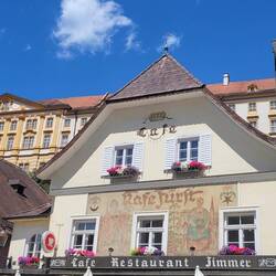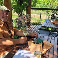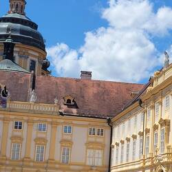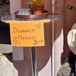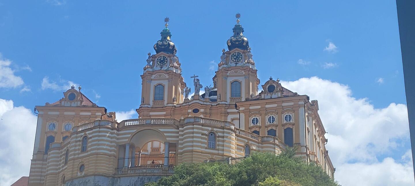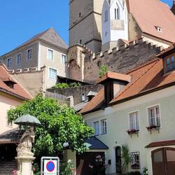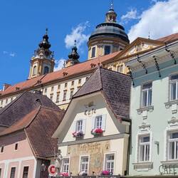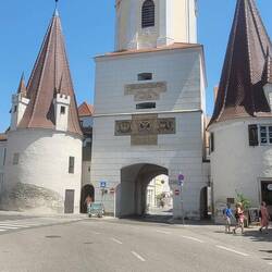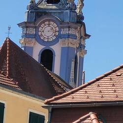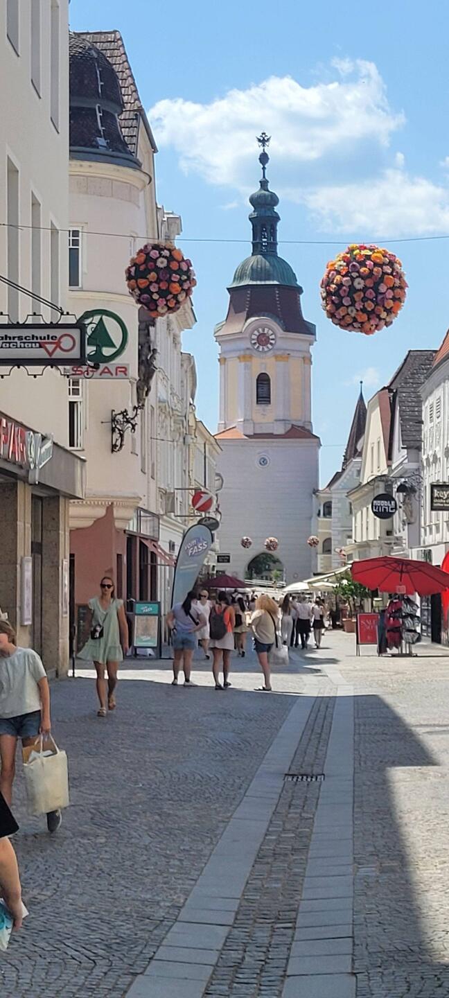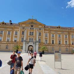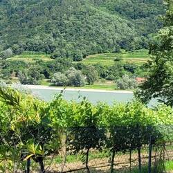 Nach Melk gefahren, Stadtbesichtigung, weiter nach Wösendorf, Seppi der Winzer getroffen, jetzt auf dem Stellplatz Aggsbach, mit Sicht auf die Donau. Die Marillenernte hat begonnen.
