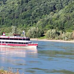 Rundtour mit dem Velo bei Affenhitze. Rechtes Ufer, dann mit der Fähre zum linken Ufer Spitz-Krems über die Brücke zum rechten Ufer -Rossatz. Jetzt Apero an der Donau