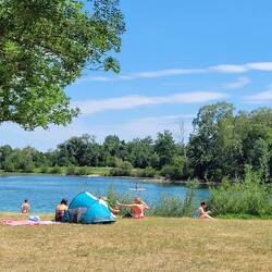 Campingplatz Bello Augusto, mit Baggersee, baden, dann mit dem Velo zum Essen nach Augsburg. Morgen geht es nach Hause
