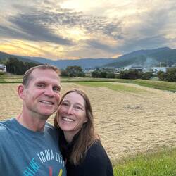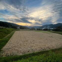 Later in the evening we took a short walk to watch the sunset. The sky turned soft pink and gold, and we looked out over rice fields, fruit orchards, and chestnut trees glowing in the fading light. It was the perfect close to the day, reminding us that sometimes the simplest things—quiet walks, home-cooked food, kind people—make the richest memories.