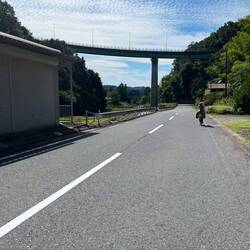 The weather was pleasant, cool enough to ride comfortably but with sunshine filtering through the hills. As we ascended one of the steeper climbs, we passed through 神道の丘公園 (Jindō-no-oka Kōen – Jindō Hill Park), where a sign told us about the 水仙プロジェクト (suisen purojekuto – daffodil project). This local effort has planted thousands of daffodils on the hillsides so that every spring, the slopes burst into yellow bloom. It was a beautiful thought that flowers of remembrance and hope would welcome future visitors up the same climb.