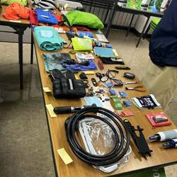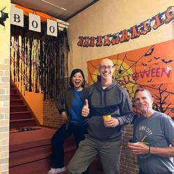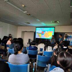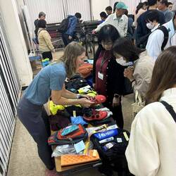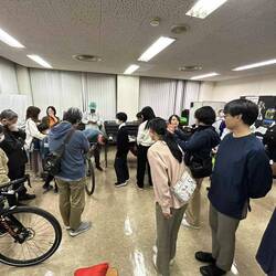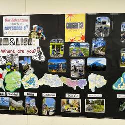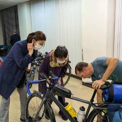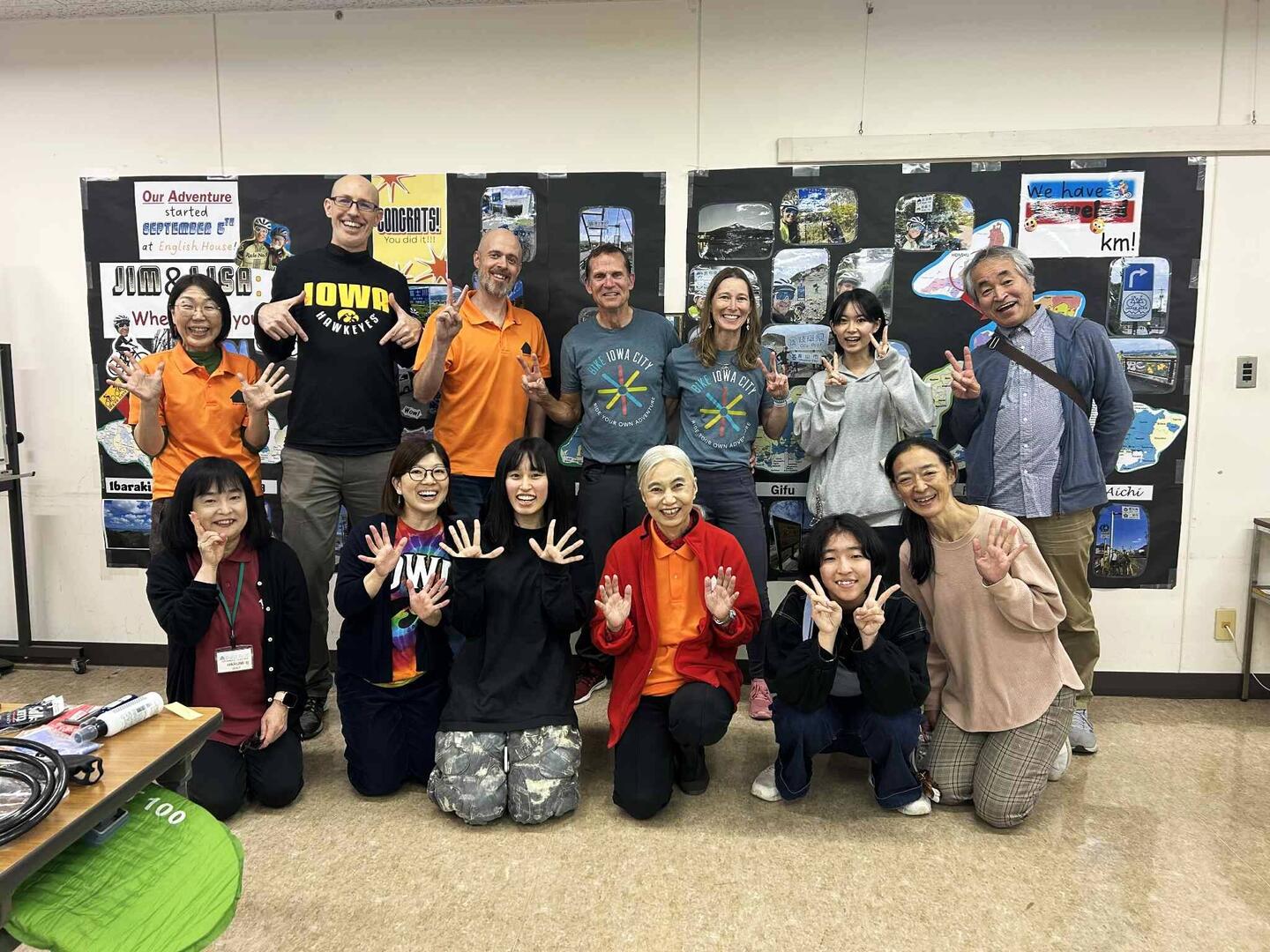 Most of our daylight hours were spent working on the presentation, a 45-minute interactive talk for the students, parents, and community members from The English House. Because their classroom space couldn’t fit everyone, they rented a hall at the local Chamber of Commerce — and by the time we started on Wednesday night, about fifty people had gathered. We gave the presentation in English, but communication went far beyond language. The audience was warm, curious, and full of great questions. Afterward, people stayed for almost another hour to look over our bikes and gear, point at our map of Japan, and talk about cycling and travel. Annie, Justin, and Ethan had even made a beautiful bulletin board display of our adventure, complete with photos and captions. Seeing it all laid out like that brought back so many memories — and reminded us how much kindness we’ve been shown along the way.
