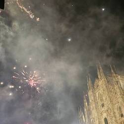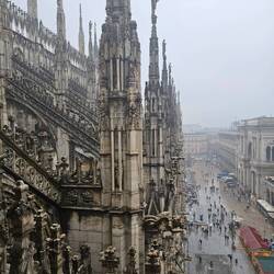 Nach einer sehr anstrengenden Fahrt von Bormio nach Milano kamen wir gegen den Abend im Hotel an. Dort gingen wir gleich zum Domplatz und schauten uns um. Es wird bereits fleissig für Olympia 2026 Milano (welches auch in Bormio stattfindet) Werbung gemacht. In einer ruhigeren Ecke etwas entfernt vom Dom fanden wir dann für den Rest des Abends eine hübsche kleine Bar. Typisch Italienisch 🇮🇹 mit Limocello-Spritz 🍋 und Ichnusa- Bier 🍺. Am frühen Morgen hatten wir dann Tickets 🎫 für mein persönliches Highlight der Stadt. Das Dach des mailänder Doms ⛪. Die Steinmetzarbeiten 🪨 sind eindrücklich. 3400 Statuen und 135 Turmspitzen sind darauf zu betrachten. Dies mit einer einmaligen Aussicht. Über eine enge Wendeltreppe 🪜ging es anschliessend in das gotische Dominnere. Dort war gerade Messe ✝️ . Mit em Bau des Doms wurde 1388 begonnen und erst 1950 abgeschlossen. Nun, fast 600 Jahre Bauzeit. Nach dem Dom ging es nochmals ins Hotel, denn das Wetter 🌧️ spielte gar nicht mit. Wir waren nach einem Spaziergang durch die Stadt durchnässt 💦 und brauchten Ersatzschuhe 👟🧦. Am Abend hatten wir Glück und bekamen ohne Reservation in einem coolen Bierbrauerei-Restaurant 🍺einen Platz. Punkt 00.00 ging es dann auf den Domplatz und es wurde Feuerwerk 🎆 gezündet.Read more