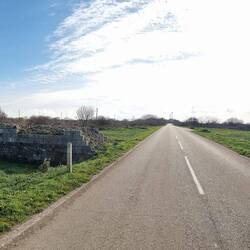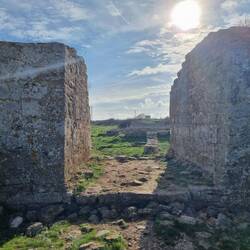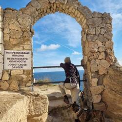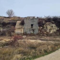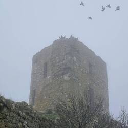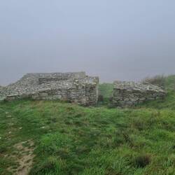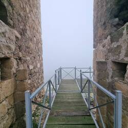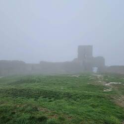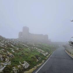 Ein möglicher Schlafplatz liegt in der Nähe einer Burgruine. Das Plätzchen sagt uns nicht zu (besser gesagt die Schotterpiste mit den grossen Schlaglöchern), der Ruine wollen wir aber trotzdemLue lisää