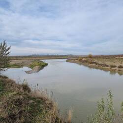Da alles flach ist, erscheint das Hundegebell sehr nahe, doch gesehen haben wir keine. Bis auf die beiden die mit der Kuhherde unterwegs waren.
