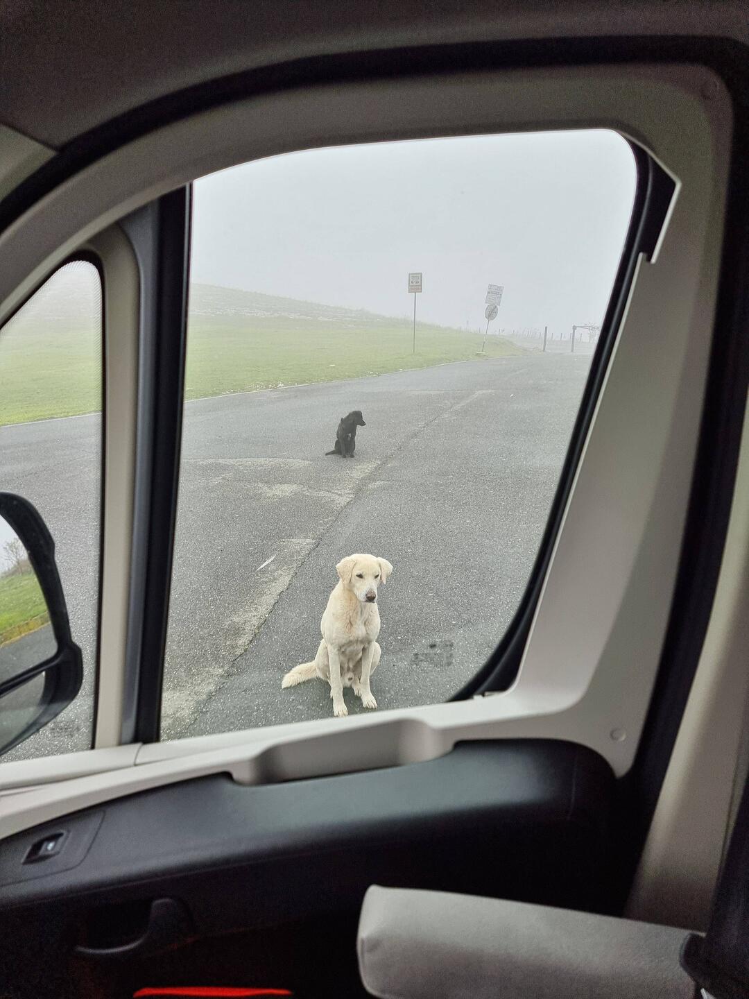 Bereits beim loslaufen mit Nara am Morgen dachte sich Anina, dass da Hunde in der Nähe waren. Und schon bald konnte sie sie auf der Strasse entdecken. Der Eine ganz ruhig, der andere bellend. AufLue lisää