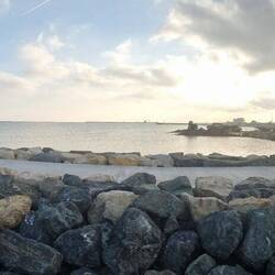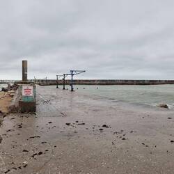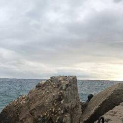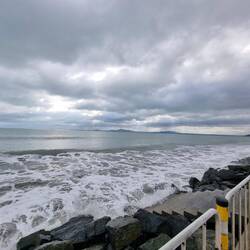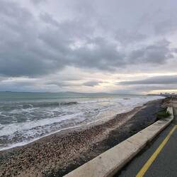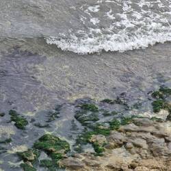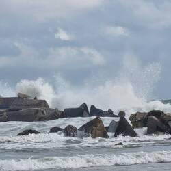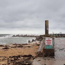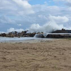 Wo gestern noch kleine Wellen ans Ufer schwappten, brachen sie heute über die Felsen und erreichten Selah teilweise sogar hinter der schützenden Mauer. Um das Salzwasser und auch den ganzen DreckLue lisää