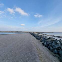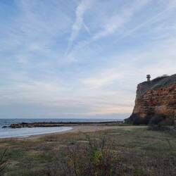 Ein paar Fahrminuten später, befinden wir uns wieder nahe dem Wasser. Auch hier scheint alles ziemlich touristisch und geschlossen. Aber um einiges Kleiner als beim letzten Strand und auch der StrandLue lisää