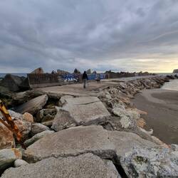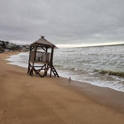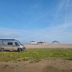 Unser heutiges Nachtplätchen ist zwar nicht ganz so schön (was die Umgebung angeht). Dafür liegt ein langer Strand direkt vor der Tür und daneben noch ein leckeres Restaurant.