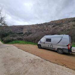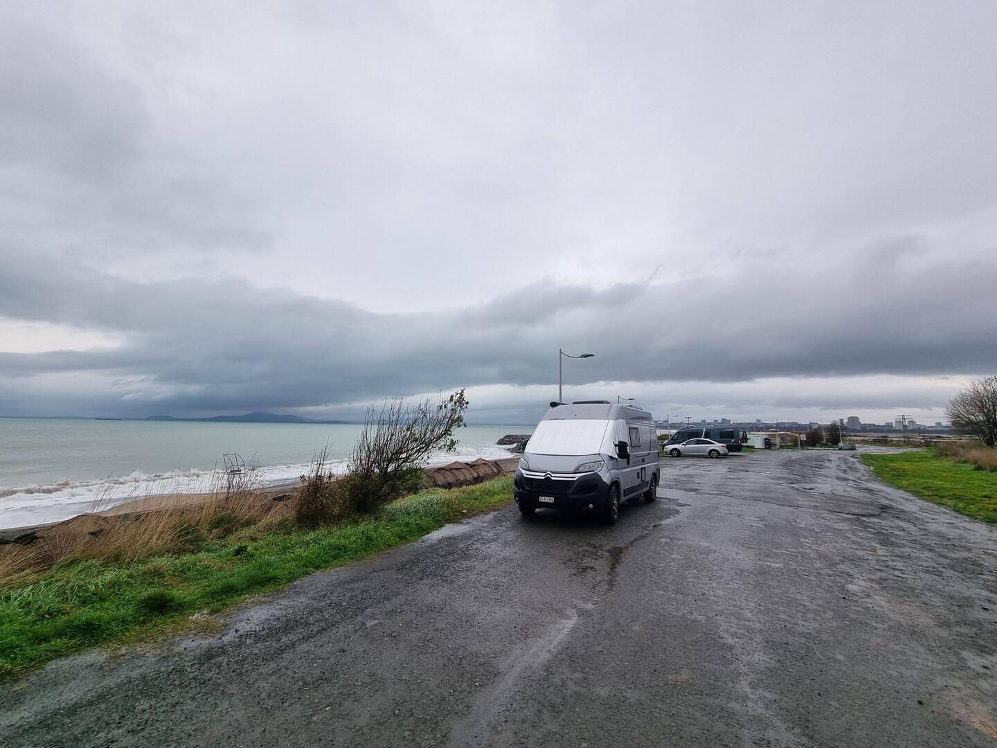 Am Strand ist es uns aufgrund des Regens etwas zu unsicher zu parkieren (nicht dass wir doch noch steckenbleiben). So geht es wieder etwas landeinwärts.
