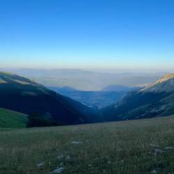 Meinen Schlafplatz hatte ich hier oben auf dem Berg zwischen Norcia zur linken und Castelluccio zur rechten gefunden. Leider war es etwas abschüssig, sodass ich nachts immer etwas gegen die Seite des Zeltes gerutscht bin.