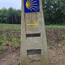 Today we strolled through our highest points on the Camino Frances. Strangely it did not feel difficult going up. Witnessed a cow parade and chorus of frogs. Swarming flies followed me Every. Single.Read more