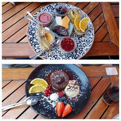 Unser letzes Frühstück in Deutschland im Alex in Rostock.
