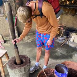 Heute ging es für uns mit dem Roller Richtung Mount Batur. Auf unserem Weg sahen wir noch einige der riesigen Figuren der Feierlichkeiten anlässlich des Nyepi. Wir hielten an einer Kaffeeplantage,Leia mais