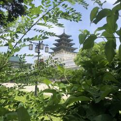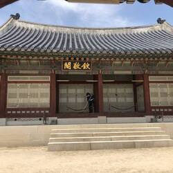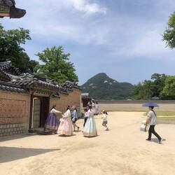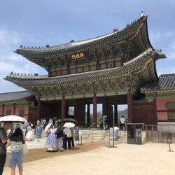 Gyeongbokgung staat in iedere reistips Seoul in de top drie. Dat kunnen we dus niet overslaan. Lekker weer dus gelopen, kaartje gehaald en naar binnen. Loopt ineens een groot deel van de bezoekersLue lisÀÀ