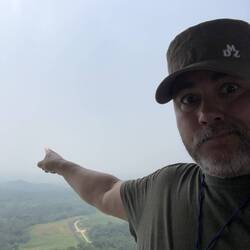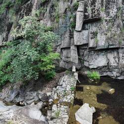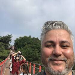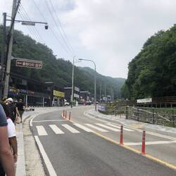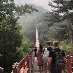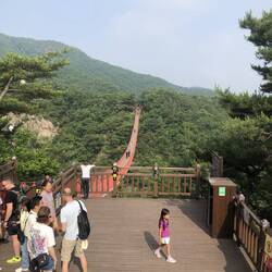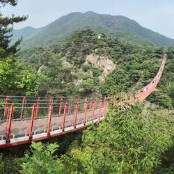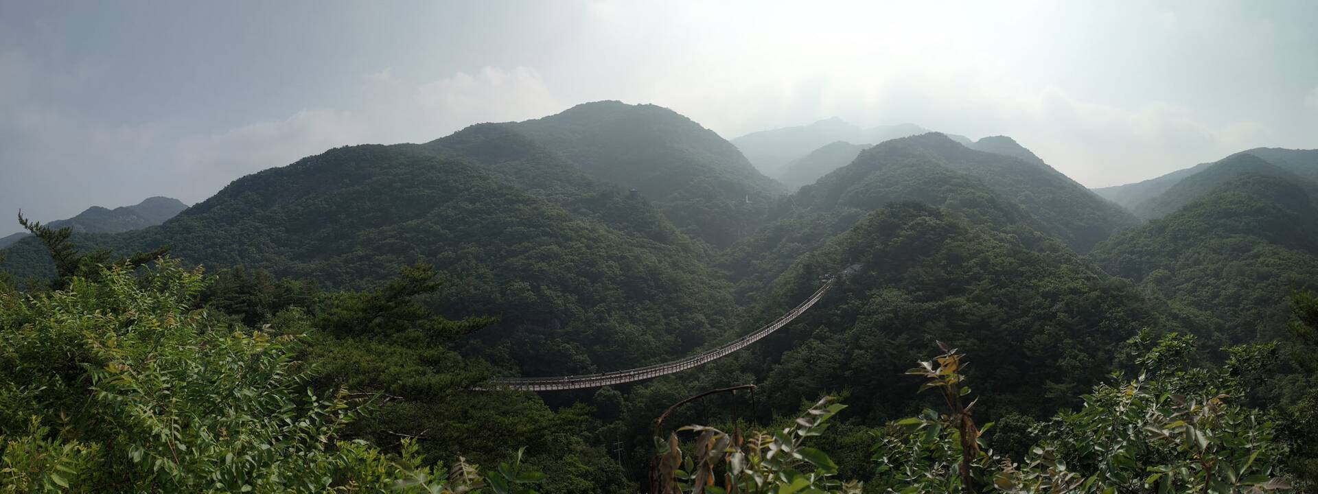 Eerste stop berg Gamaksan. Daar hangt, zoals ze meestal doen, een hangbrug. Daardoor de meest luie soort brug die erLue lisÀÀ