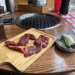 Ik begin wel een beetje trek te krijgen en had hier één ding nog niet geprobeerd. Koreaanse BBQ. En dat is dus binnen, waar het hoort. Niets geen gedoe met buiten staan, regen ja nee? PlasticLue lisÀÀ